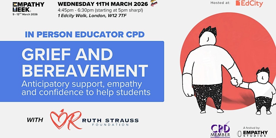 Join Empathy Week and the Ruth Strauss Foundation to learn practical, ready-to-use strategies for confidently supporting pupils experiencing grief, anticipatory loss, or high-stress life events without compromising your own professional boundaries or wellbeing.